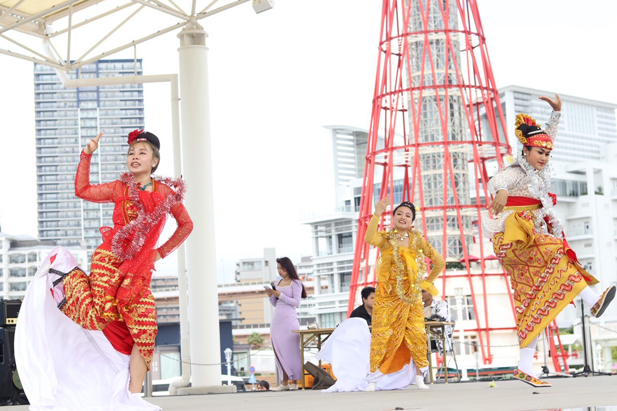 6月15日(日)、神戸メリケンパークのメインステージ会場にて、ミャンマーの新年のお祭り「ティンジャン」を開催しました。仏教国ミャンマー最大のお祭りで、水をかけ合うことで旧年中の悪運を洗い流し、身を清めて新年を迎えます。