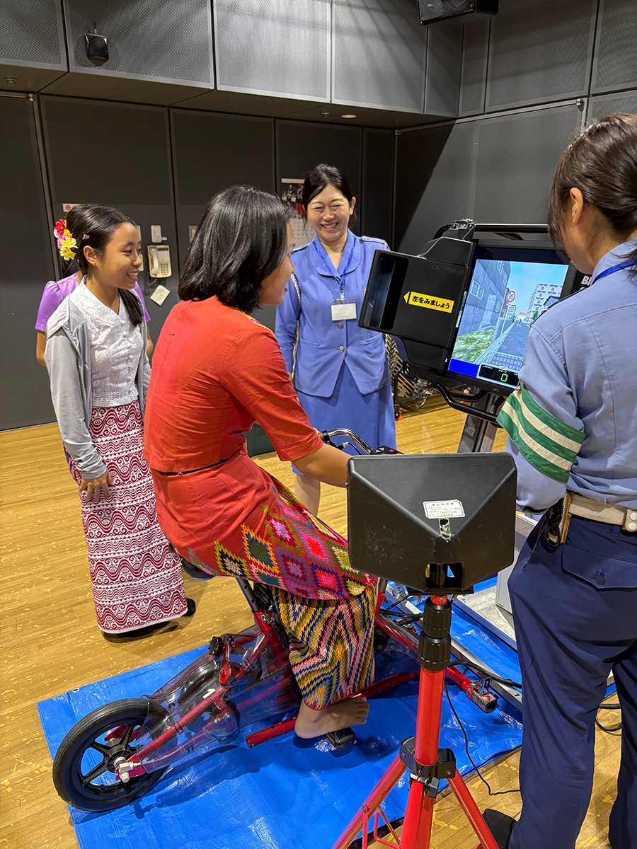 メイン会場では、ミャンマーの紹介映像を流し、私たちのボランティア活動のパネル展示、ミャンマー人ダンサーによる民族舞踊や人形劇の披露が催されました。ミャンマー人によるミャンマー料理、そして長田区の子ども食堂「ヒーロー食堂」で提供している日本のカレーライスも楽しめました。また別室では、長田警察署による自転車シミュレーターを使った交通安全教室や、参加した子供たちに楽しんでもらうための遊び場、ミャンマーの民族衣装ロンジーの試着体験など同時開催しました。大変盛会のうちに、無事終えることができました。